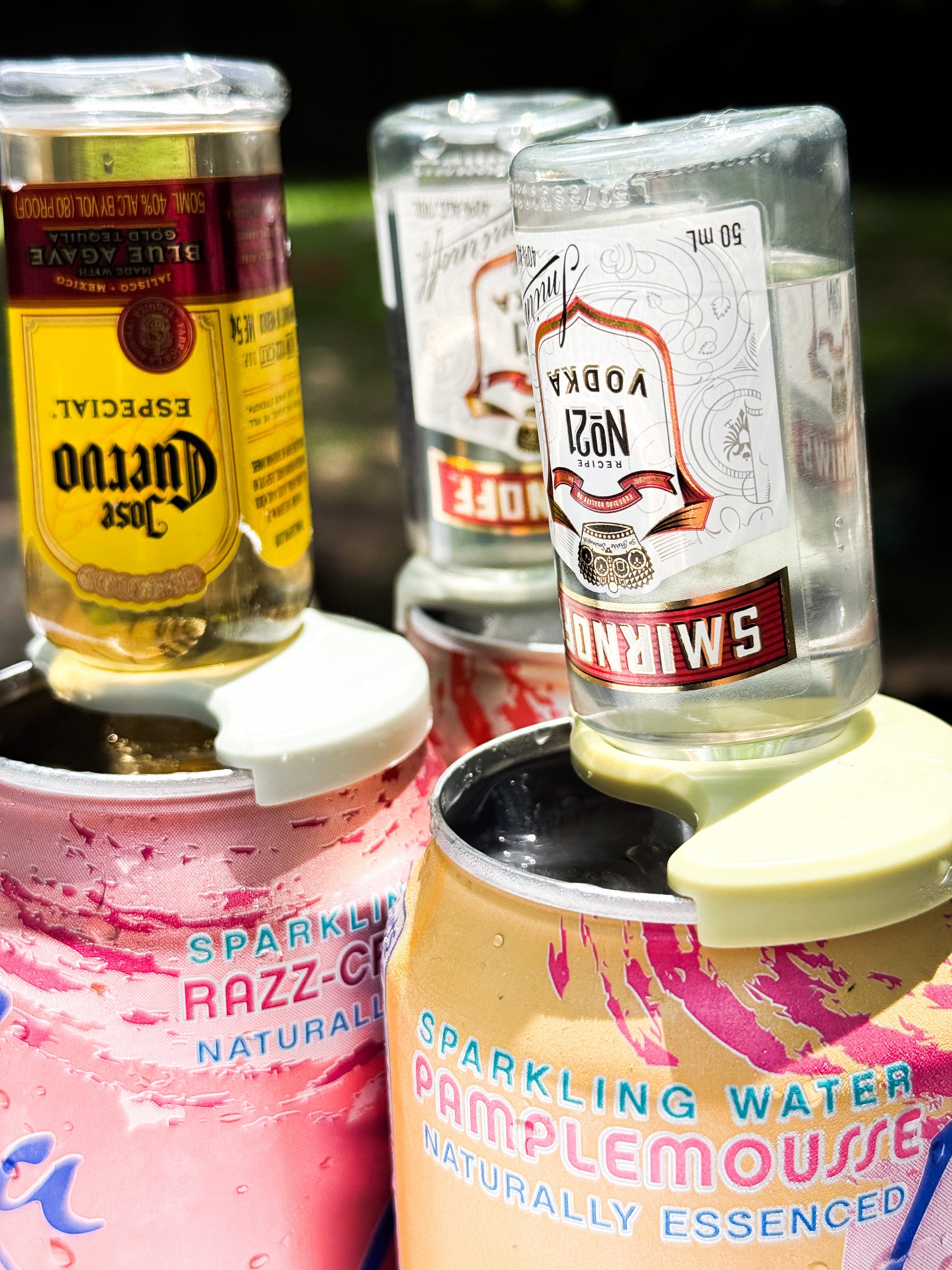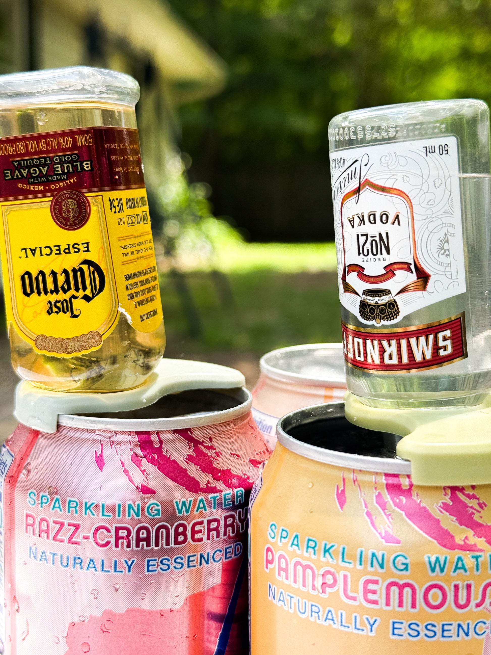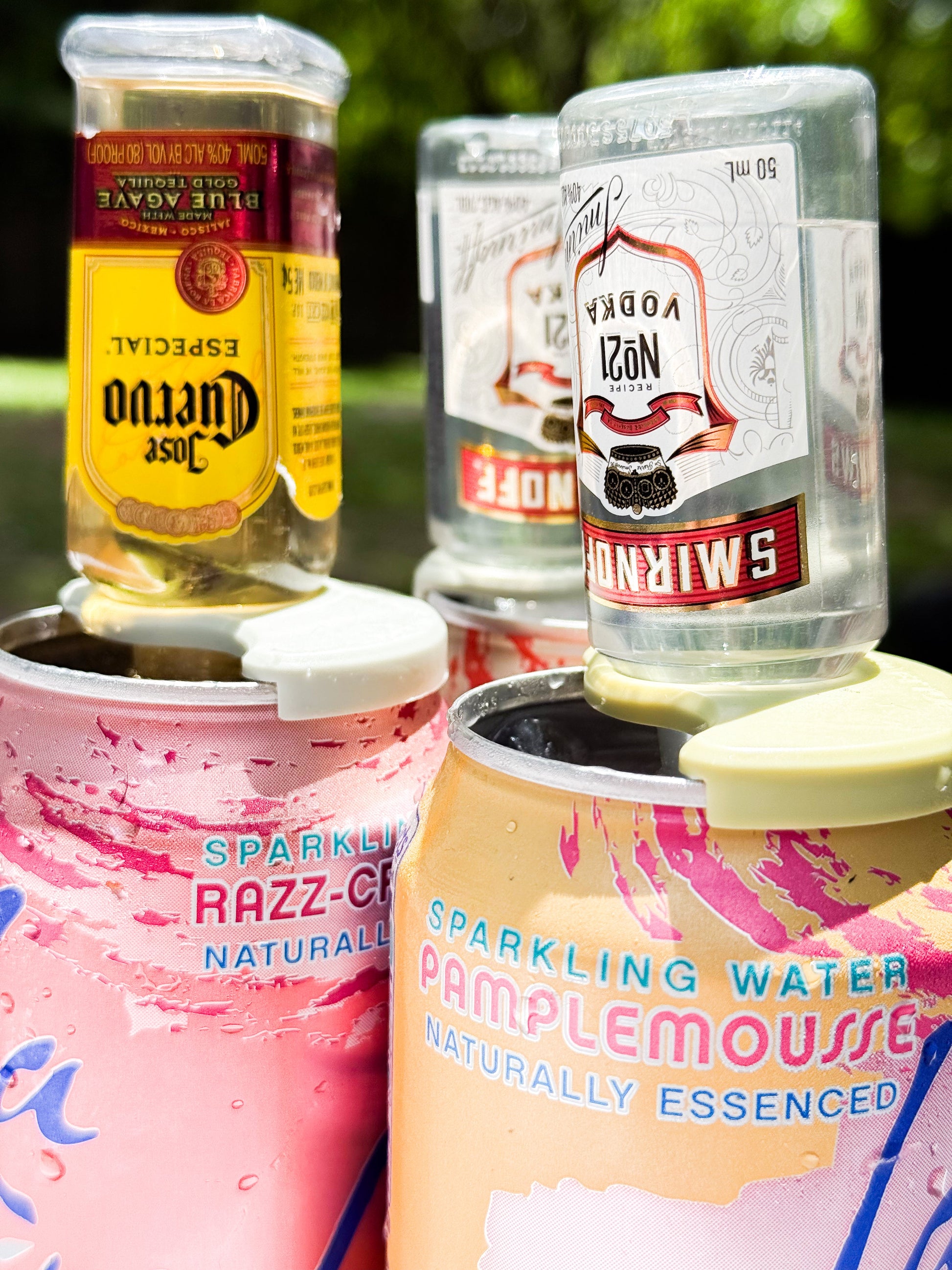 - Add spirits to your favorite canned drink without needing to create additional room!