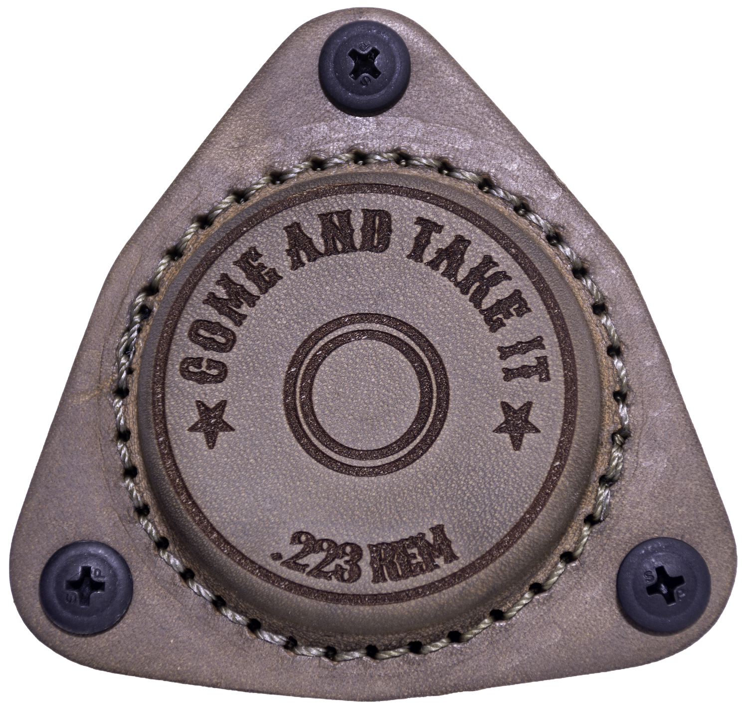 Won't scratch firearm’s finish, top-grade leather cover with embossed graphic.