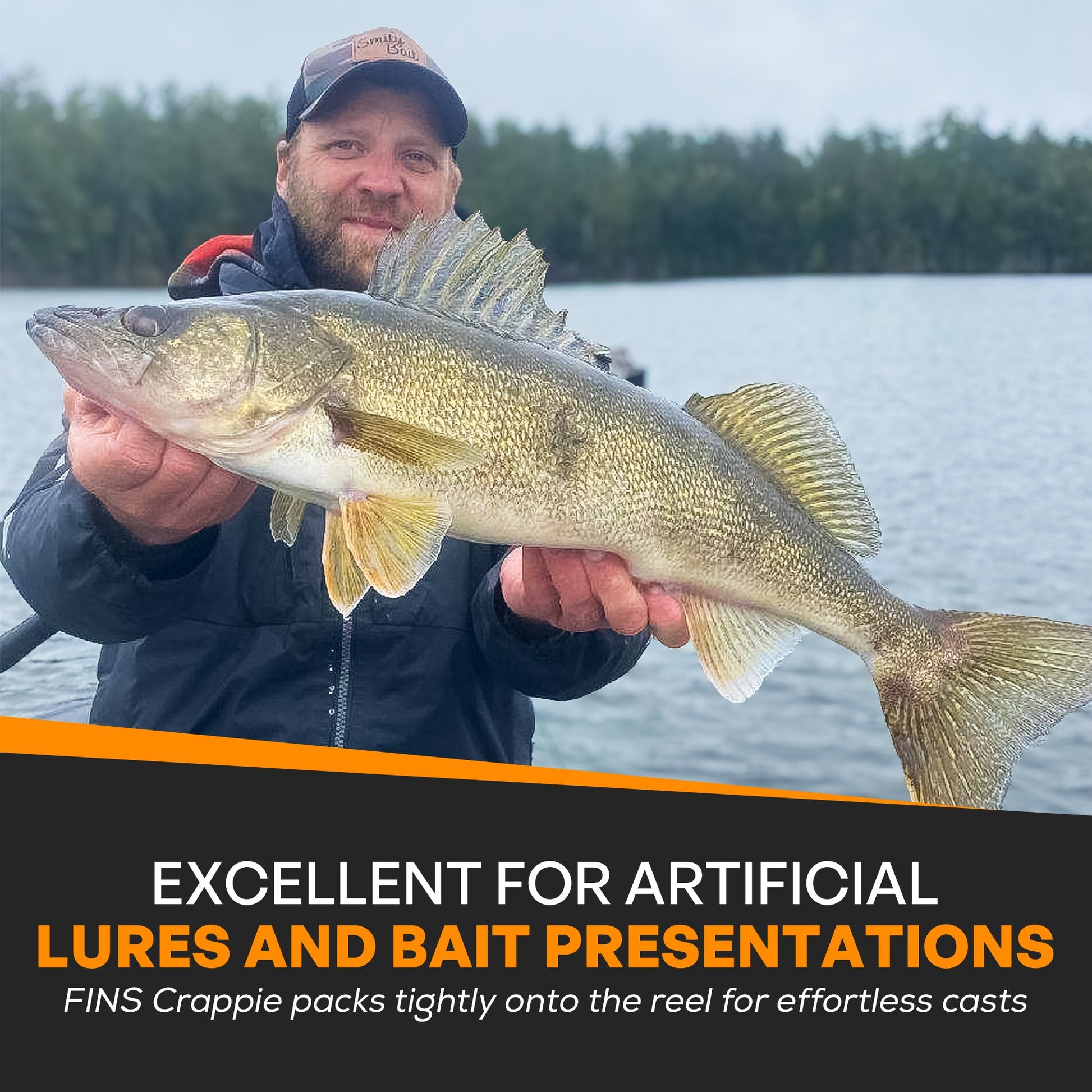 - EXCEPTIONAL CRAFTSMANSHIP: Crafted for the toughest fishing conditions, FINS Crappie is designed to be a reliable choice for anglers targeting crappie and other panfish. With superior strength and an ultra-thin diameter, they reduce wind knots and tangles. Plus, their color retention technology keeps the line looking vibrant and new.