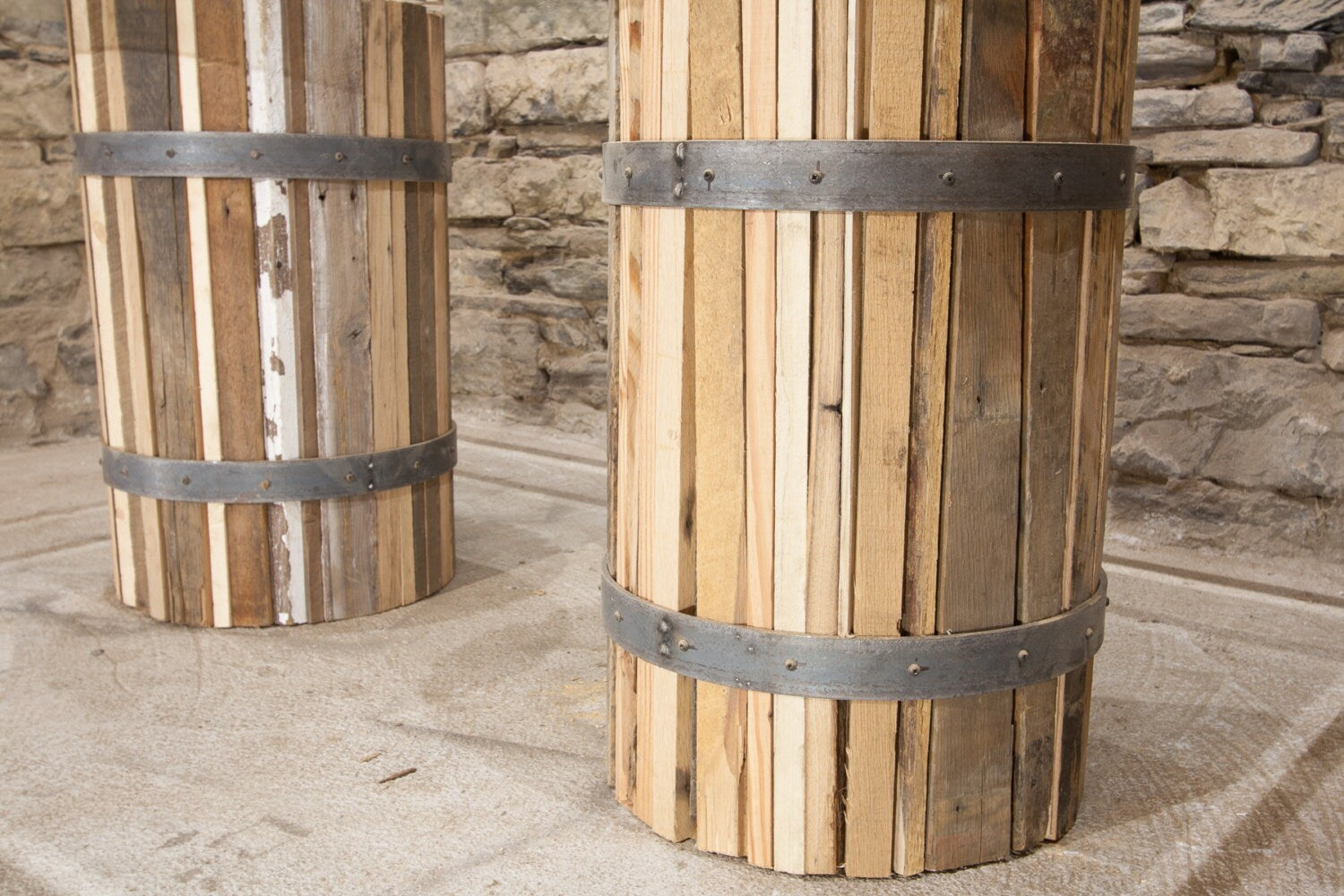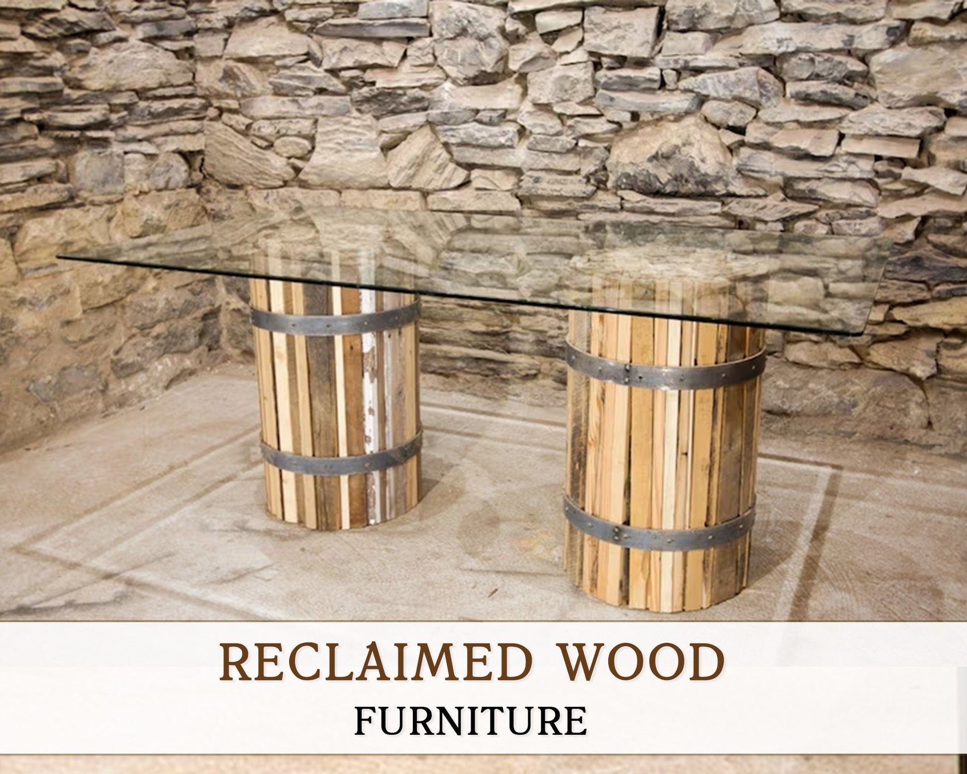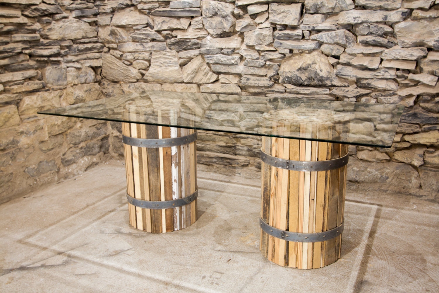 Strident in its simplicity, our Sutikku Table creates a striking presence in any setting. Made from reclaimed wood bundled together with wrought iron rings and topped with a sheet of tempered glass.