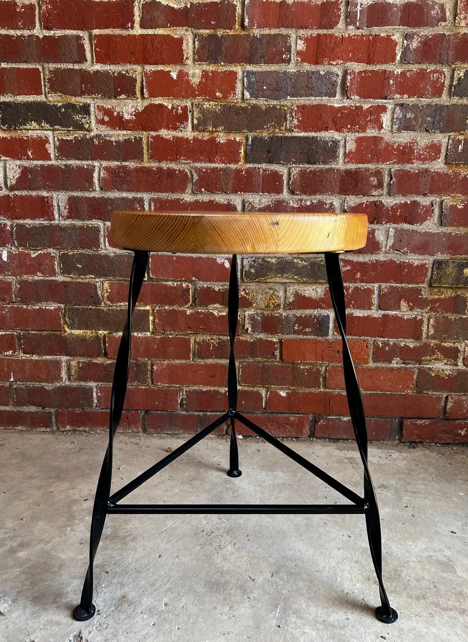 FREE SHIPPING - Twisted Wrought Iron Leg Bar Stool, Modern Bar Stool, Industrial Tripod Bar Stool, Backless Bar Stool, Reclaimed Wood Stool
