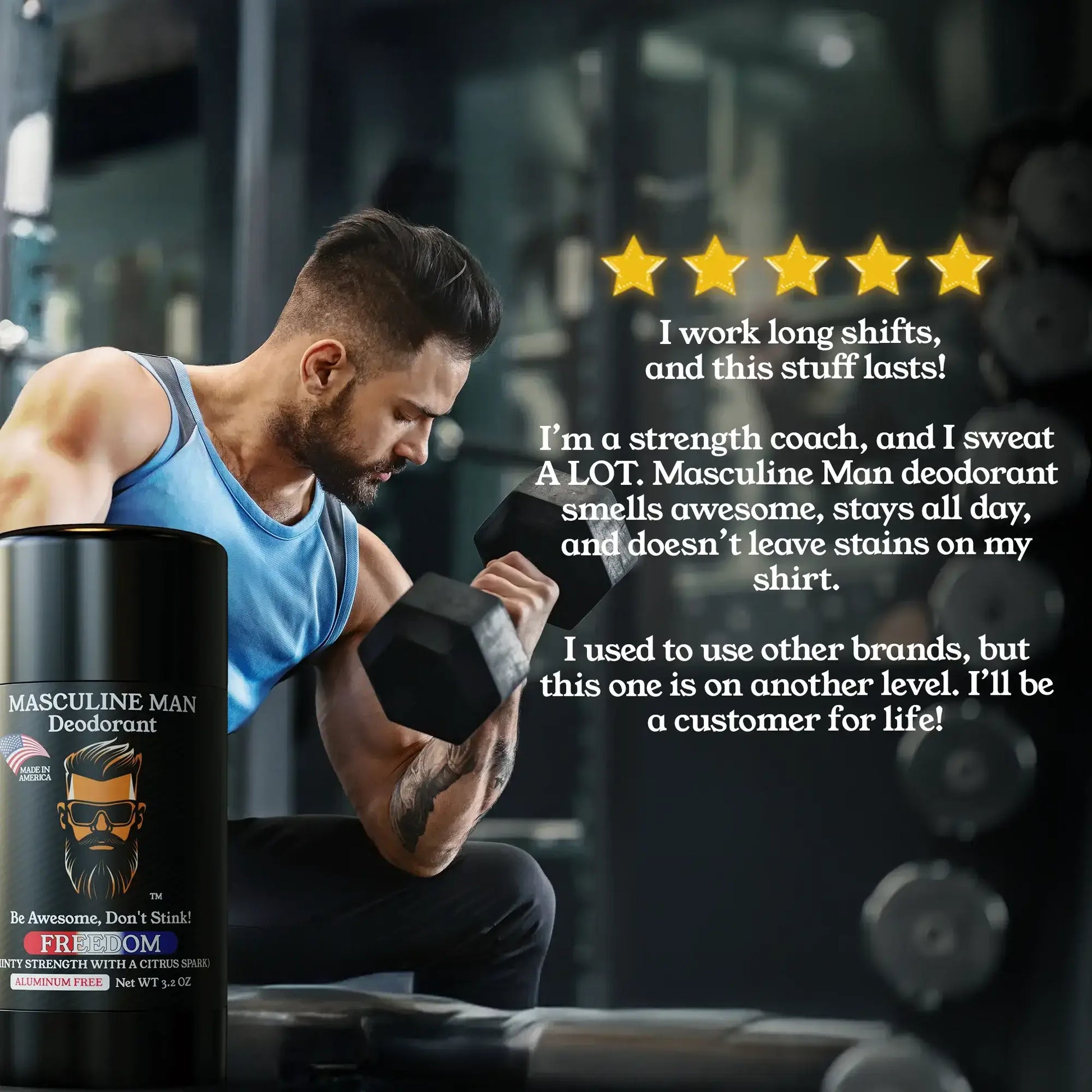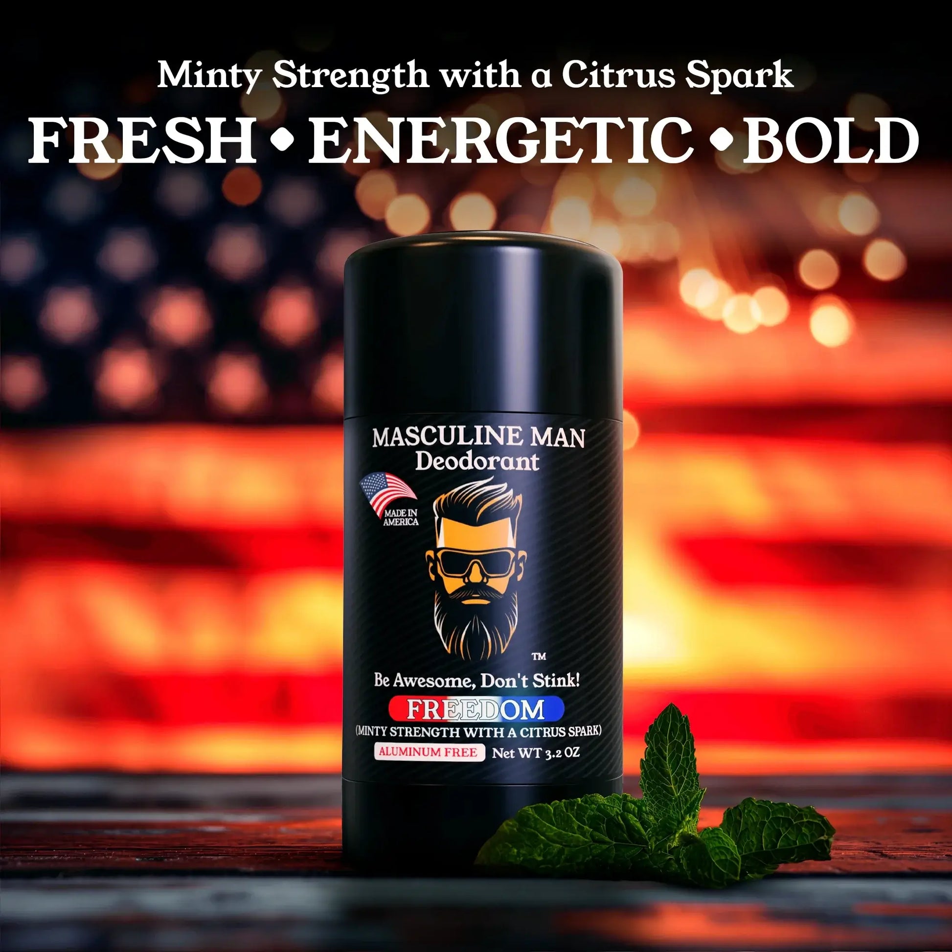 Elevate your grooming game with MASCULINE MAN Deodorant. Our Natural Aluminum Free deodorant strikes the perfect balance between effective odor protection and skin nourishment. Designed for the modern man, it offers a non-greasy, smooth application and long-lasting freshness without the use of harsh chemicals. Embrace a deodorant that not only keeps you feeling confident and odor-free but also cares for your skin with every swipe.