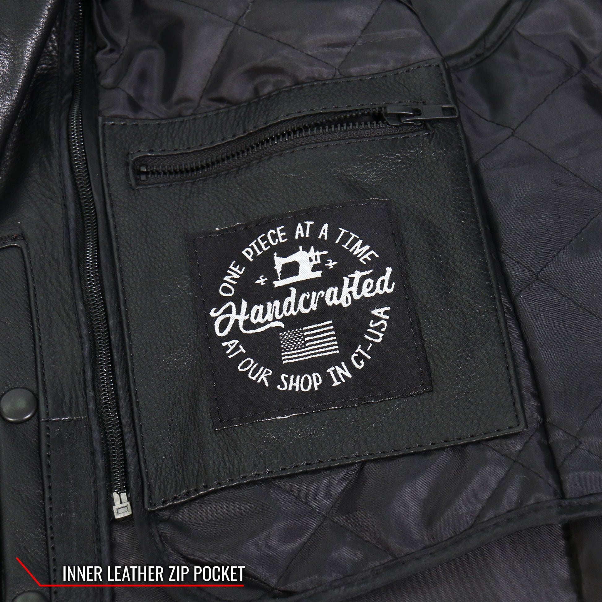 5 YEAR WARRANTY - This American Made leather jacket is backed by Hot Leathers 5 year warranty. Hot Leathers is proud to stand behind the quality and craftsmanship of this fine garment. All stitching and hardware is guaranteed against fault or defect for a period of 5 years from date of purchase.