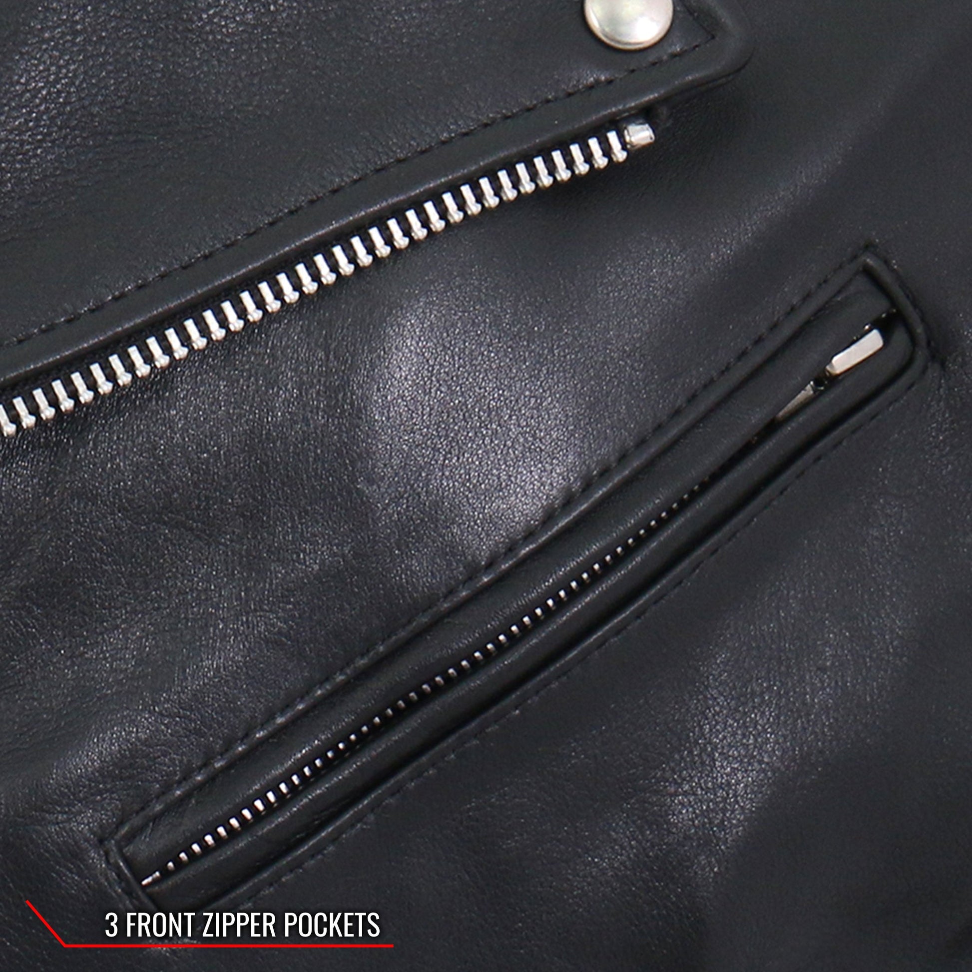 Hot Leathers JKM5009 Men's USA Made Black Premium Leather Classic Motorcycle Biker Jacket