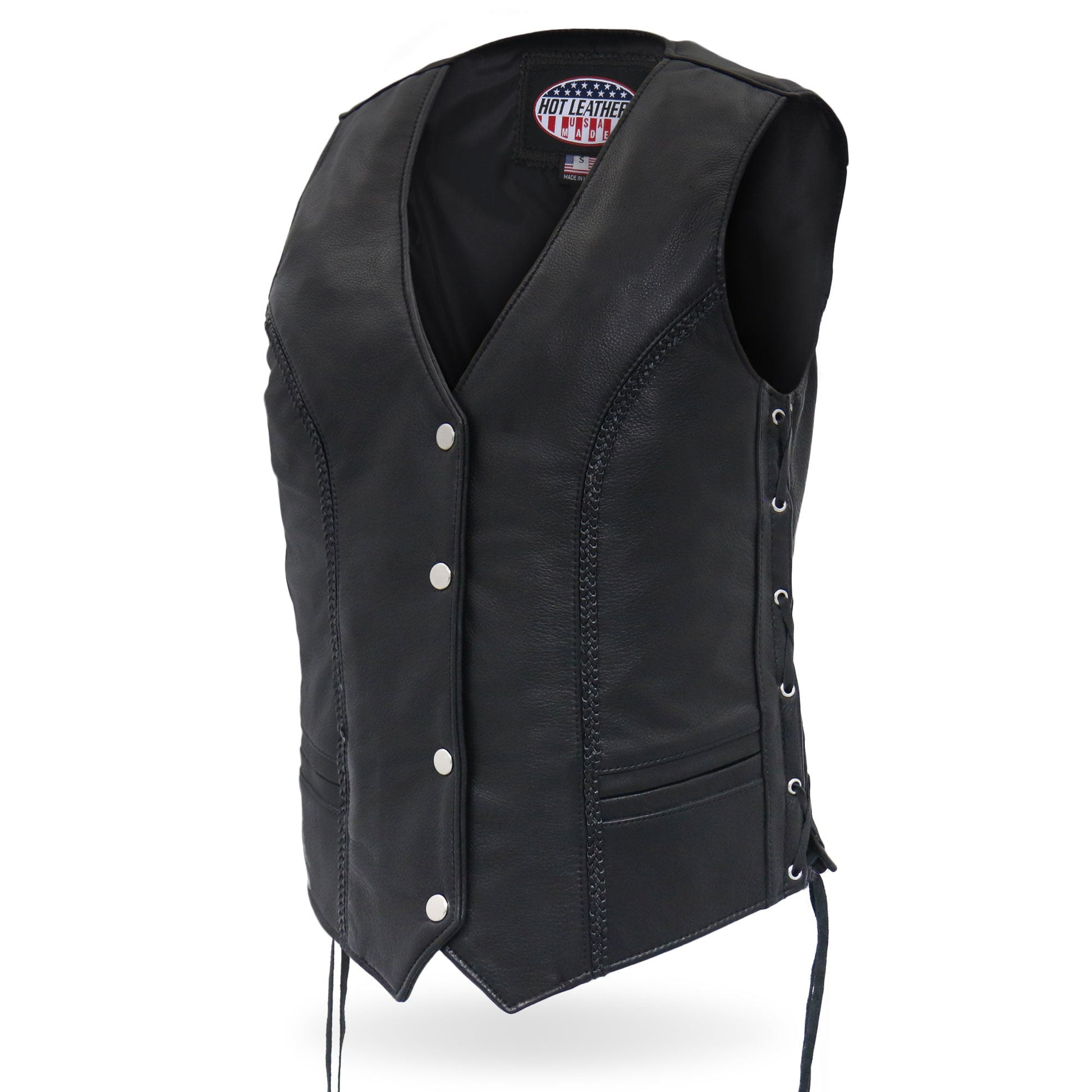 Hot Leathers VSL5001 USA Made Ladies Braided Leather Motorcycle Biker Vest