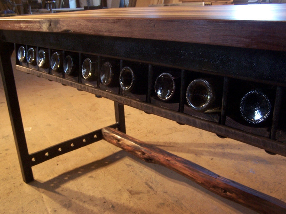 Shown here with a built in wine rack that holds a whole case of your favorite vintage, as well as a hand-hewn footrail reclaimed from an 1800's Quaker built house in the Shenandoah Valley.