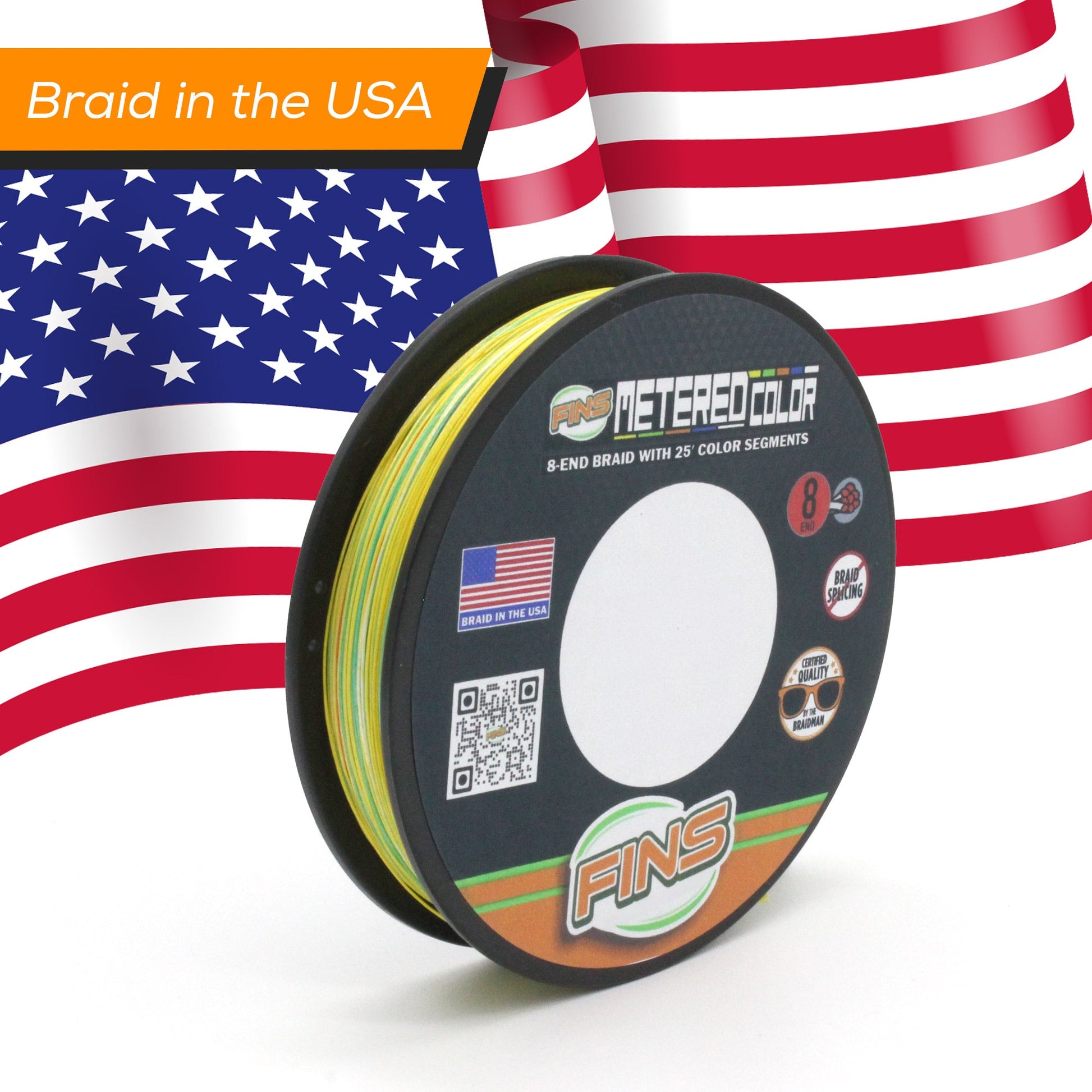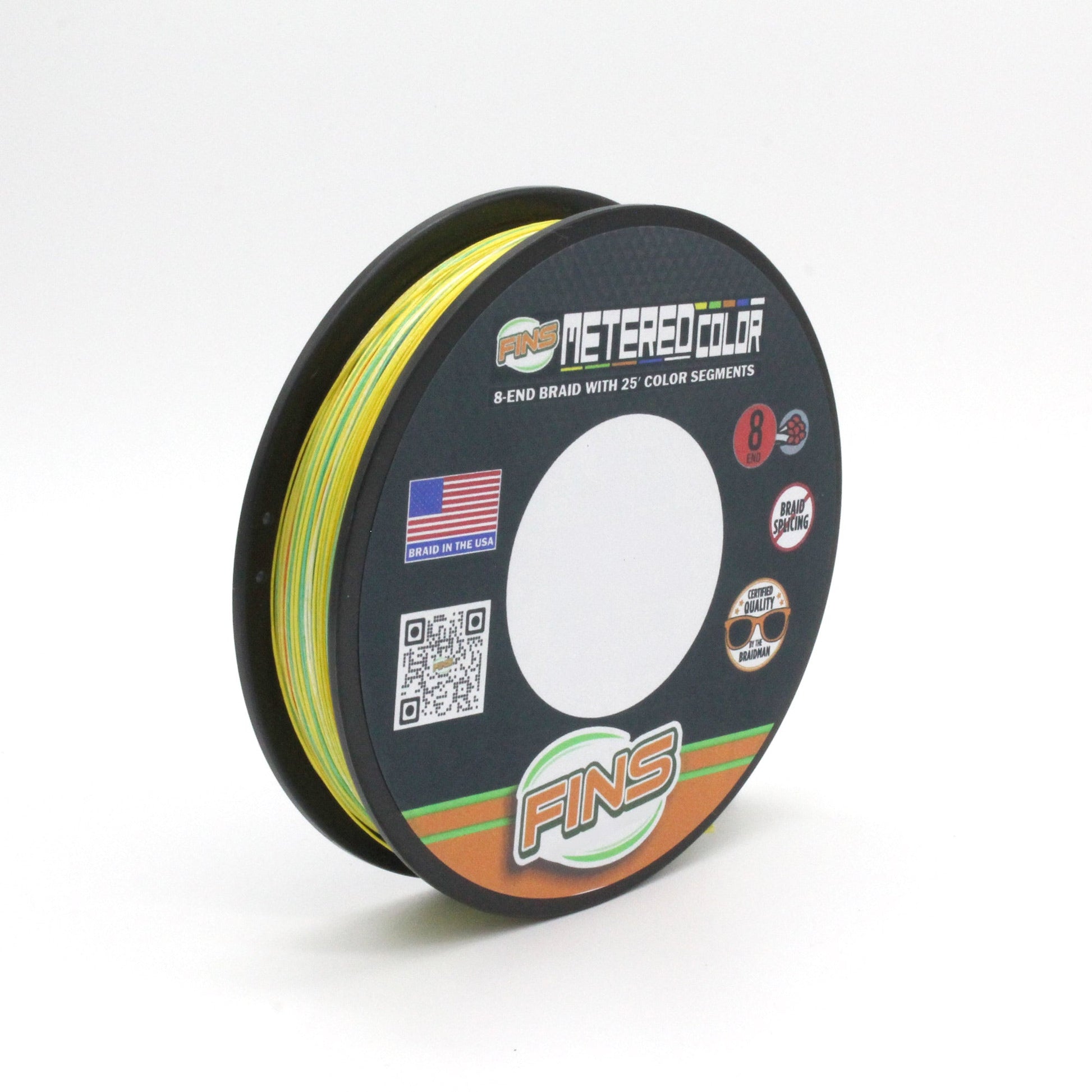 The Metered Colored Braid is marked with a repeating pattern of 4 colors to allow the angler to know exactly how much line is off the reel to place your bait presentation in front of fish known to be suspended up off the bottom. The line has 25-foot color segments of yellow, green, orange, and blue, with a 1-foot white mark in the center of each segment. MCB is an 8-end braid with a soft “hand” and no gummy coating or color transfer.
