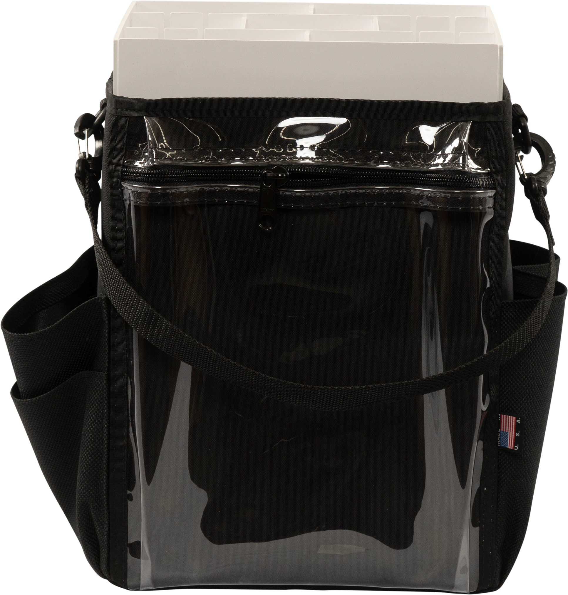 - Outside pockets hold your tools and accessories