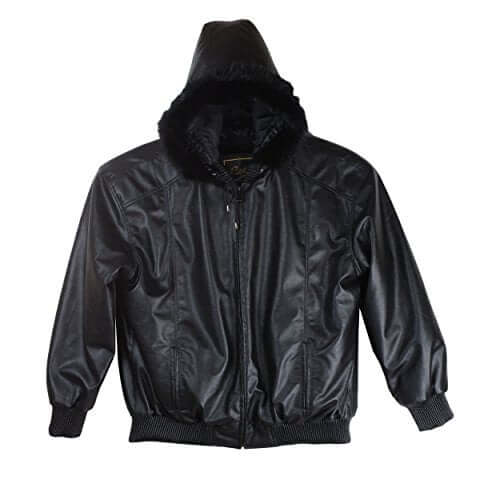 Details: All Seasons Faux Leather Jacket with Faux Fur Detachable Zip Out Hoody. Bomber Jacket With Baseball Style Collar with Heavy Zip Out Liner for Cold Winter Weather.