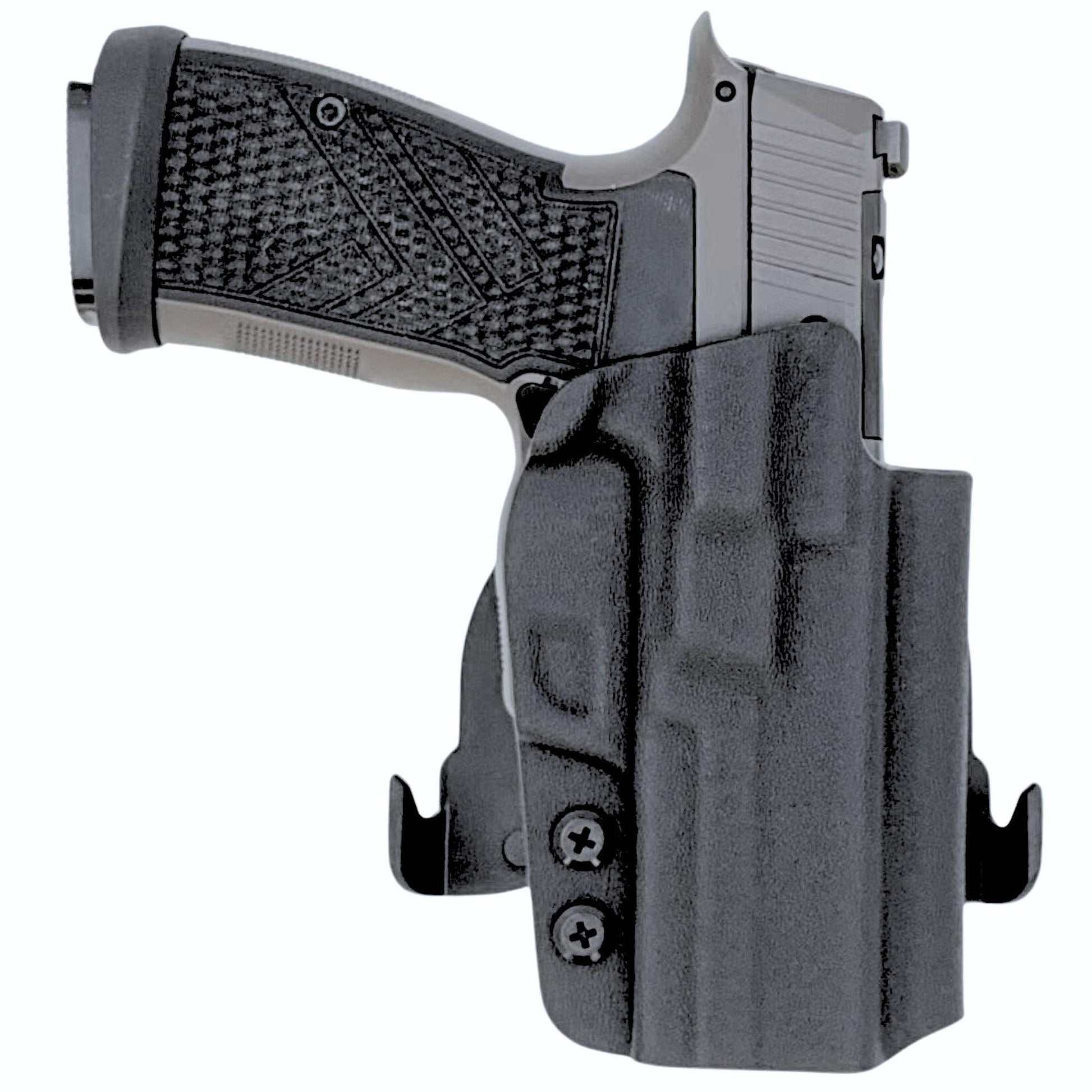 Our minimalist outside the waistband KYDEX holsters hold your weapon securely while remaining extremely lightweight and durable. They are the perfect all around holster for every day OWB carry.