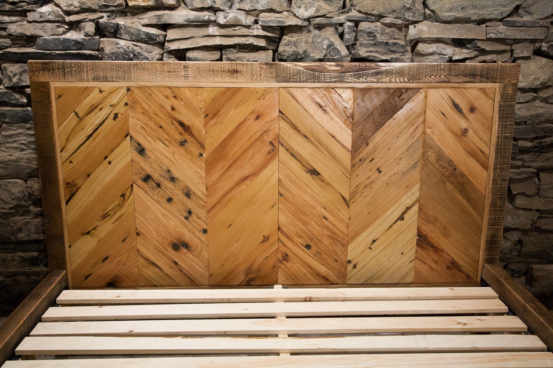 The Chevron Headboard, Chevron Wood Bed Furniture, Reclaimed Wood Be