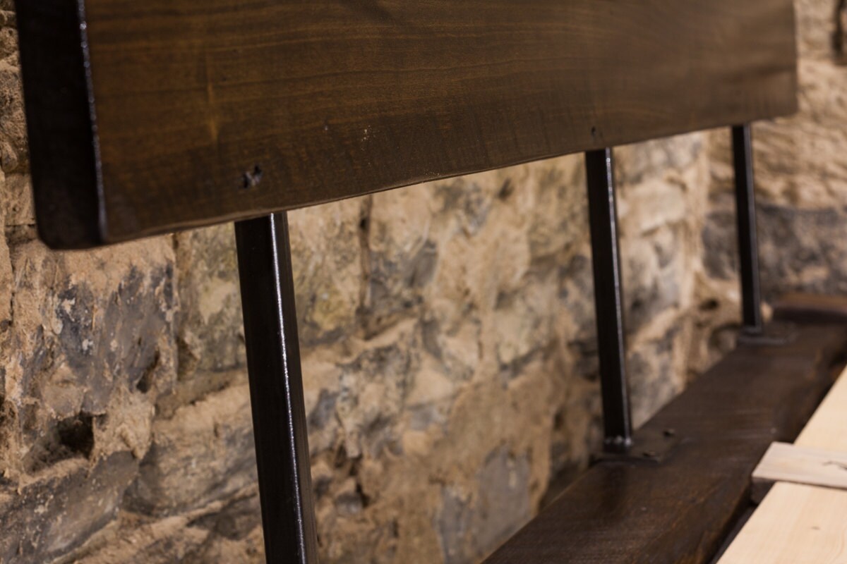 Combined with the appeal of reclaimed, earth-friendly wood, our sleek modern design fits well in a wide variety of settings and easily breaks down for transportation. Shown here is a queen size bed frame.